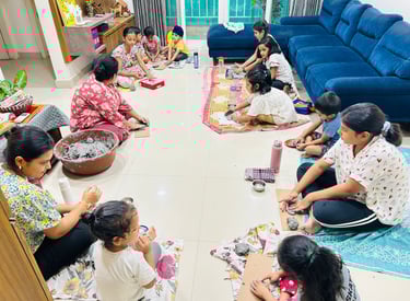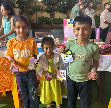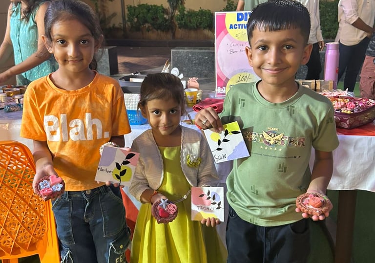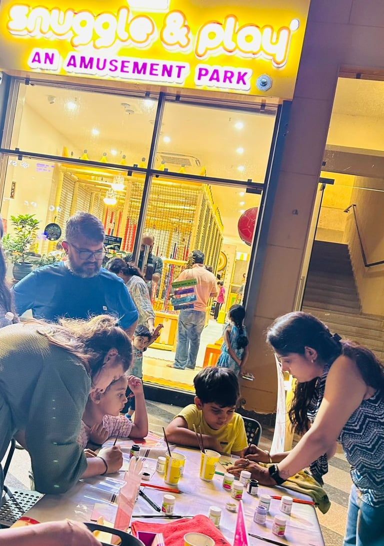 Patterns of Fun, Shades of Happiness! Dive into colors and learn to make your own bright and beautiful Rangolis! A joyful workshop where kids can play, create, and celebrate with patterns and fun.